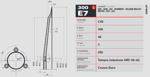 Ніж для слайсера 300мм / 40мм 3 отвори 250 (нержавіюча сталь С45) RGV, Beckers, Sirman, Celme, Bizerba, Graef та ін.
